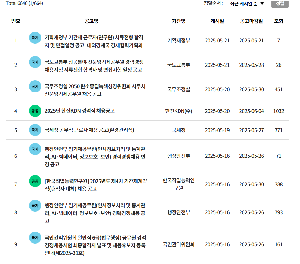 나라에서 내는 채용 공고, 모집하는 직종에 따른 다양한 정보를 한 번에 제공합니다. 클릭
